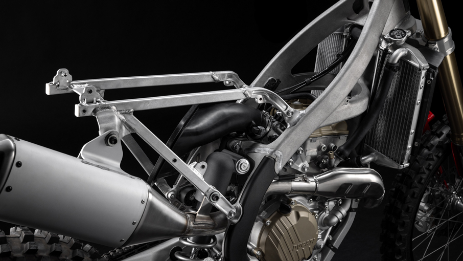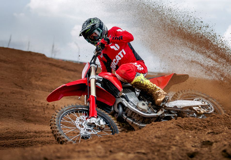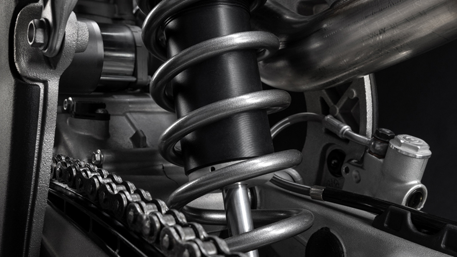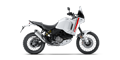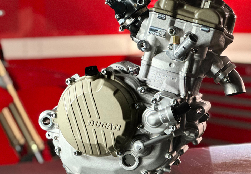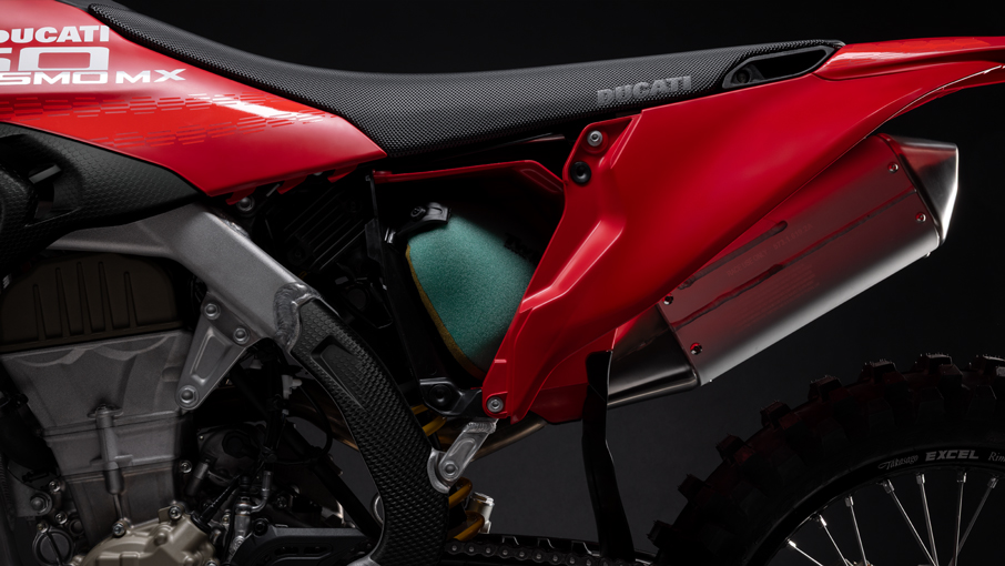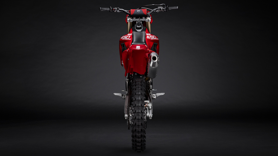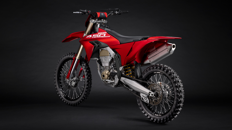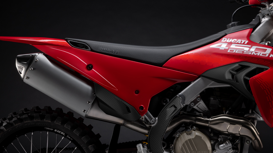 Όπως και όλα τα βασικά εξαρτήματα, έτσι και οι αναρτήσεις επιλέχθηκαν στοχευμένα και αναπτύχθηκαν σε συνεργασία με τη Showa, έναν ιστορικό συνεργάτη της Ducati και στις μοτοσυκλέτες δρόμου. Το ανεστραμμένο πιρούνι τύπου USD και έχει διάμετρο 49 χιλιοστά. Το αμορτισέρ είναι από μαύρο ανοδιωμένο αλουμίνιο, με άξονα 16 χιλιοστών και διαδρομή 129 χιλιοστών. Τοποθετείται κεντρικά στον χυτό βραχίονα με σύστημα μοχλικού. Η προοδευτικότητα του συνδέσμου καθορίστηκε κατά τη διάρκεια των αγώνων της σεζόν 2024. Η συνολική διαδρομή τροχού είναι 301 χιλιοστά. Αναρτήσεις με ελατήριο ως ελαστικό στοιχείο αντί για αέρα κρίθηκαν η καλύτερη λύση, ικανοποιώντας τις ανάγκες αναβατών κάθε επιπέδου και διευκολύνοντας το στήσιμο της ανάρτησης.