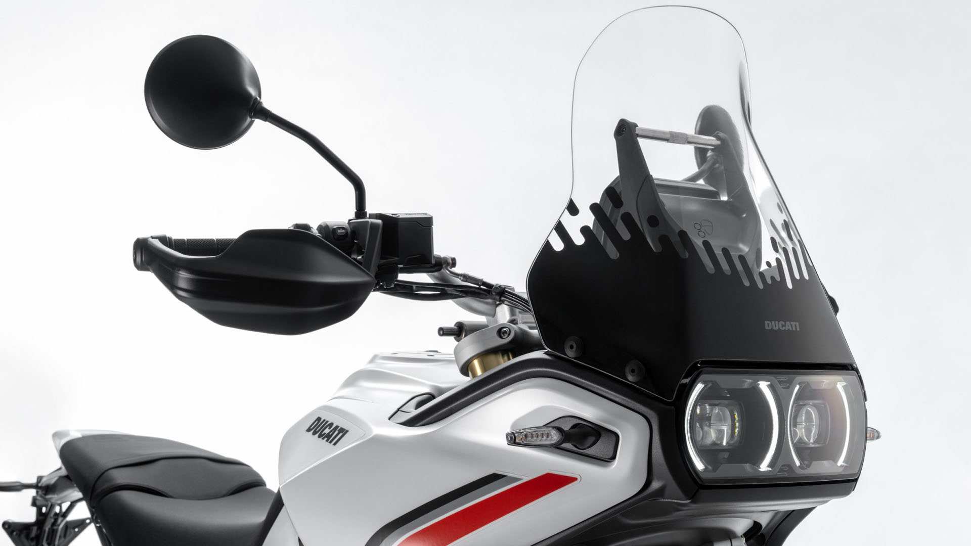 Η ζελατίνα έχει επανασχεδιαστεί για τη βέλτιστη διαχείριση της ροής του αέρα, προσφέροντας αυξημένη προστασία στον αναβάτη και τον πίνακα οργάνων. Μια λύση που καθιστά τη μοτοσυκλέτα ακόμα πιο κατάλληλη για off-road χρήση, αναδεικνύοντας ταυτόχρονα την αισθητική της ισορροπία.