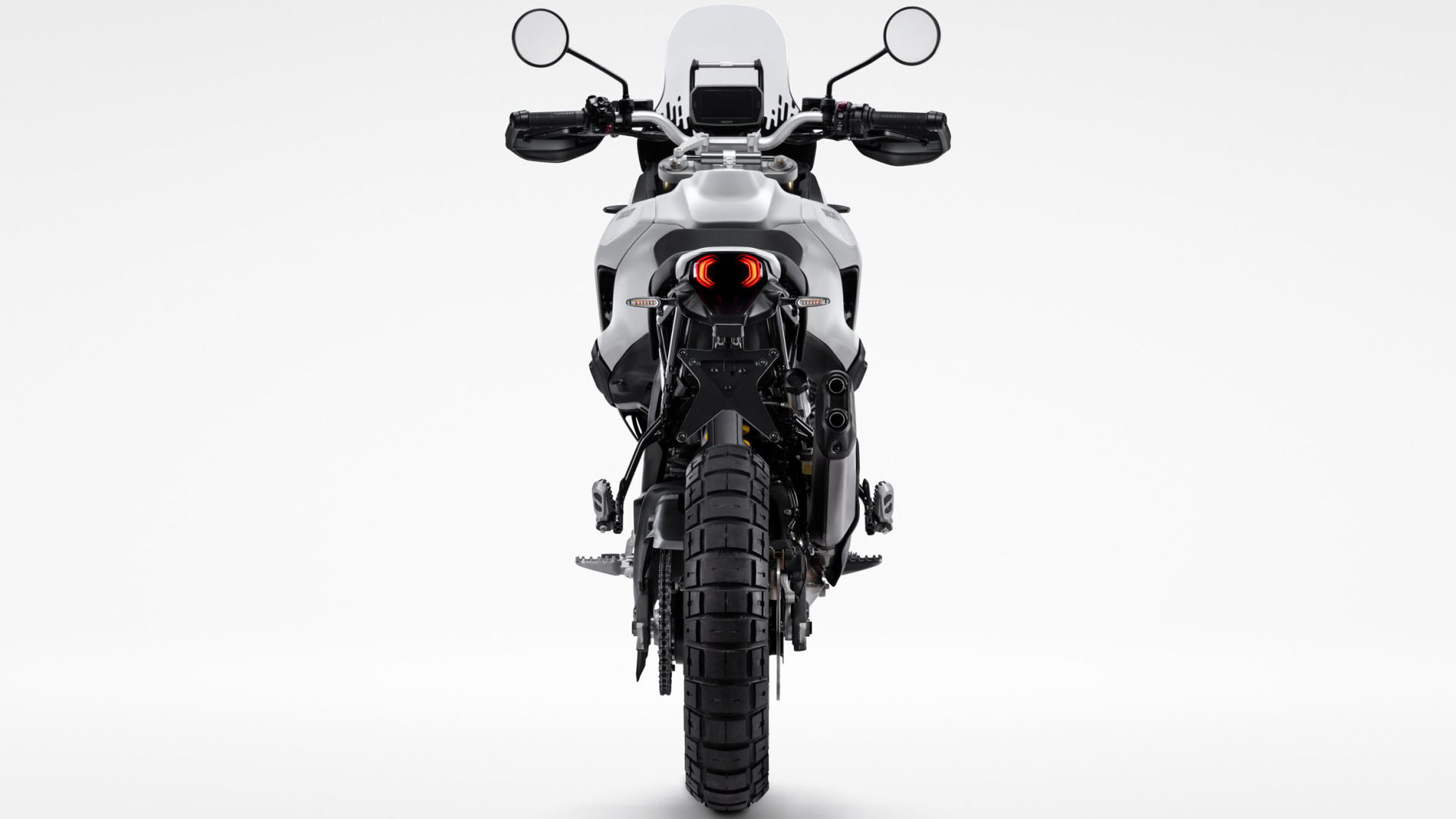 Σύγχρονη και με ξεκάθαρο σχήμα, η φωτεινή υπογραφή ενισχύει την αίσθηση κυριαρχίας και παρουσίας στον δρόμο. Κάθε λεπτομέρεια των φωτιστικών σωμάτων συνδυάζει το στυλ με τη χρηστικότητα, αναδεικνύοντας τις αέρινες γραμμές της μοτοσυκλέτας. Το πίσω μέρος ολοκληρώνει το αισθητικό σύνολο, υπογραμμίζοντας με σαφήνεια τον off-road χαρακτήρα της.