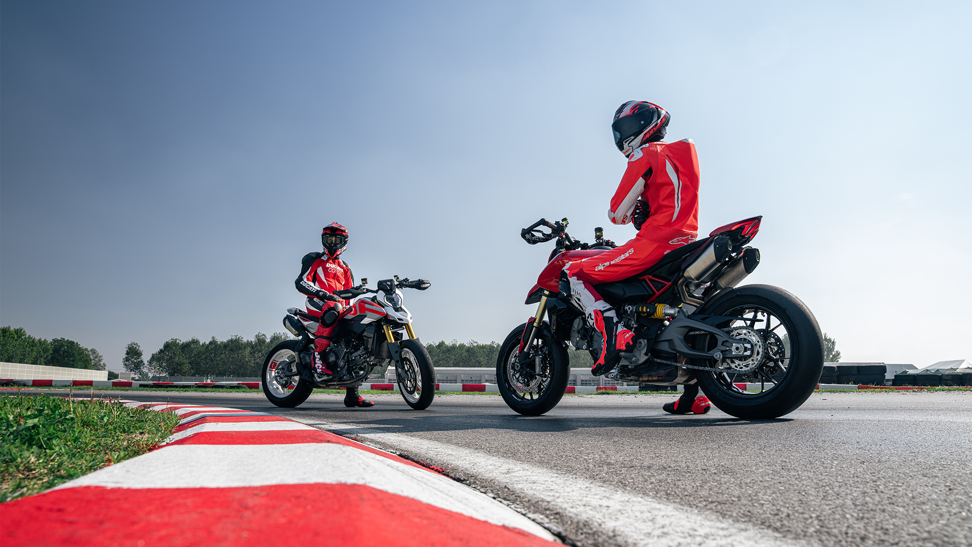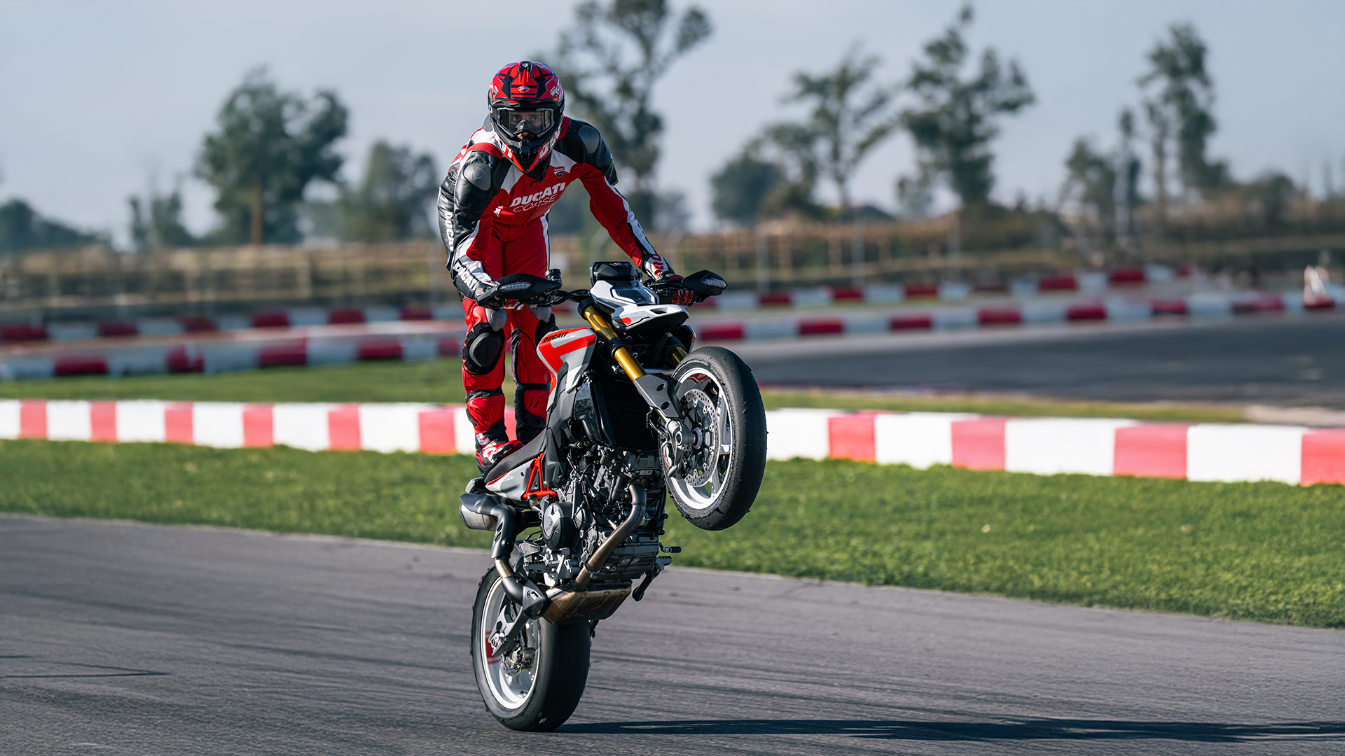 Τα Riding Modes προσφέρουν τέσσερα προρυθμισμένα προφίλ οδήγησης — Race, Sport, Road και Wet — ώστε η συμπεριφορά της Hypermotard V2 να προσαρμόζεται ιδανικά στον αναβάτη, στη διαδρομή και στις συνθήκες. Κάθε mode μεταβάλλει άμεσα την απόκριση του κινητήρα και την παρέμβαση των ηλεκτρονικών, εξασφαλίζοντας πάντα τη σωστή ισορροπία μεταξύ απόδοσης και ασφάλειας.