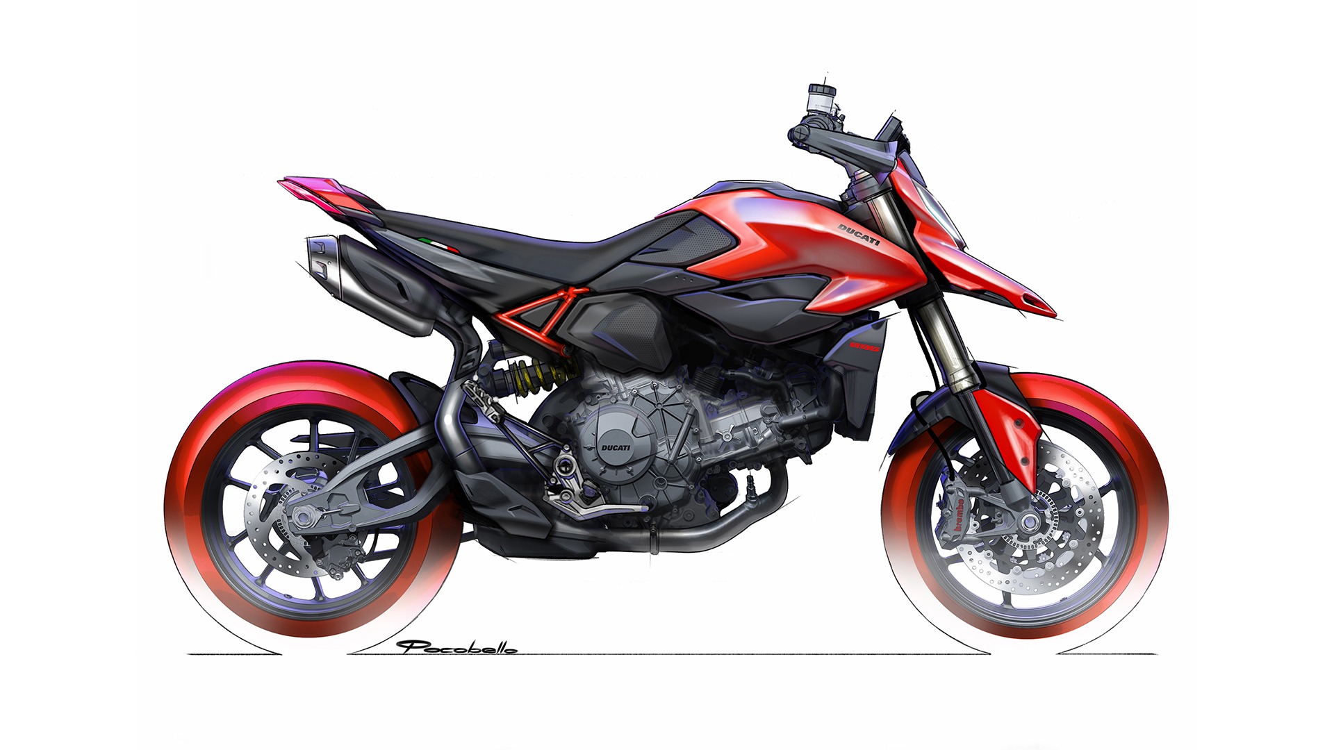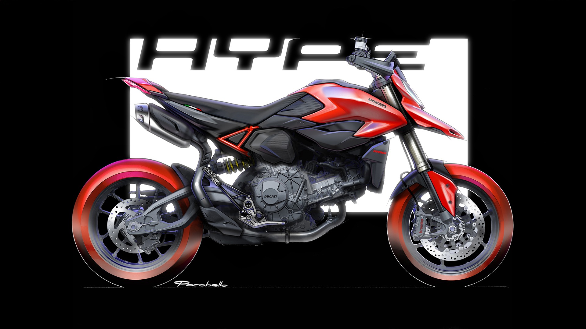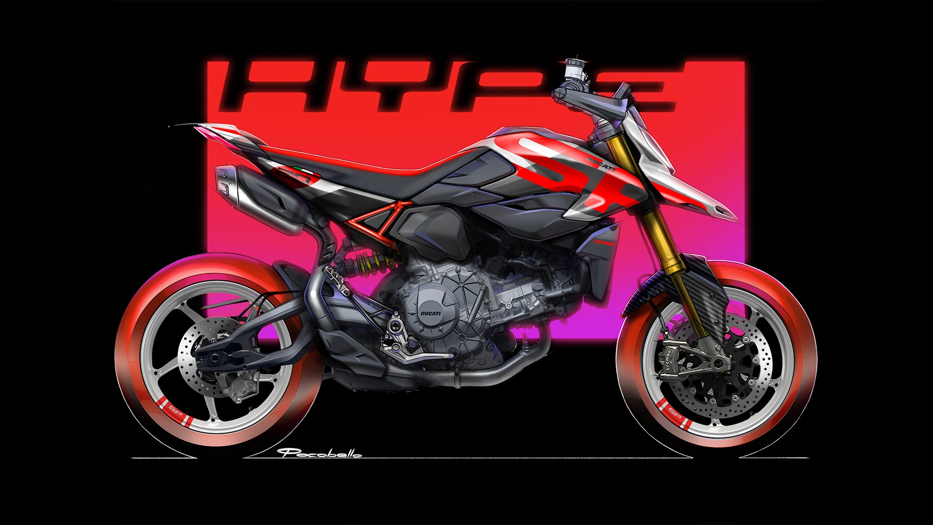 Εμπνευσμένη από το πρωτότυπο που εντυπωσίασε στην EICMA 2005, η νέα Hypermotard επαναφέρει και εξελίσσει τα σχεδιαστικά στοιχεία της Hypermotard 1100, τονίζοντας ακόμη περισσότερο τις τολμηρές αναλογίες και τις σμιλεμένες επιφάνειές της. Οι καθαρές, δυναμικές γραμμές συνδυάζονται με καλοδουλεμένους και σύγχρονους όγκους, διαμορφωμένους γύρω από μια εξαιρετικά compact μηχανική βάση, στην καρδιά της οποίας δεσπόζει ο νέος δικύλινδρος Ducati V2.