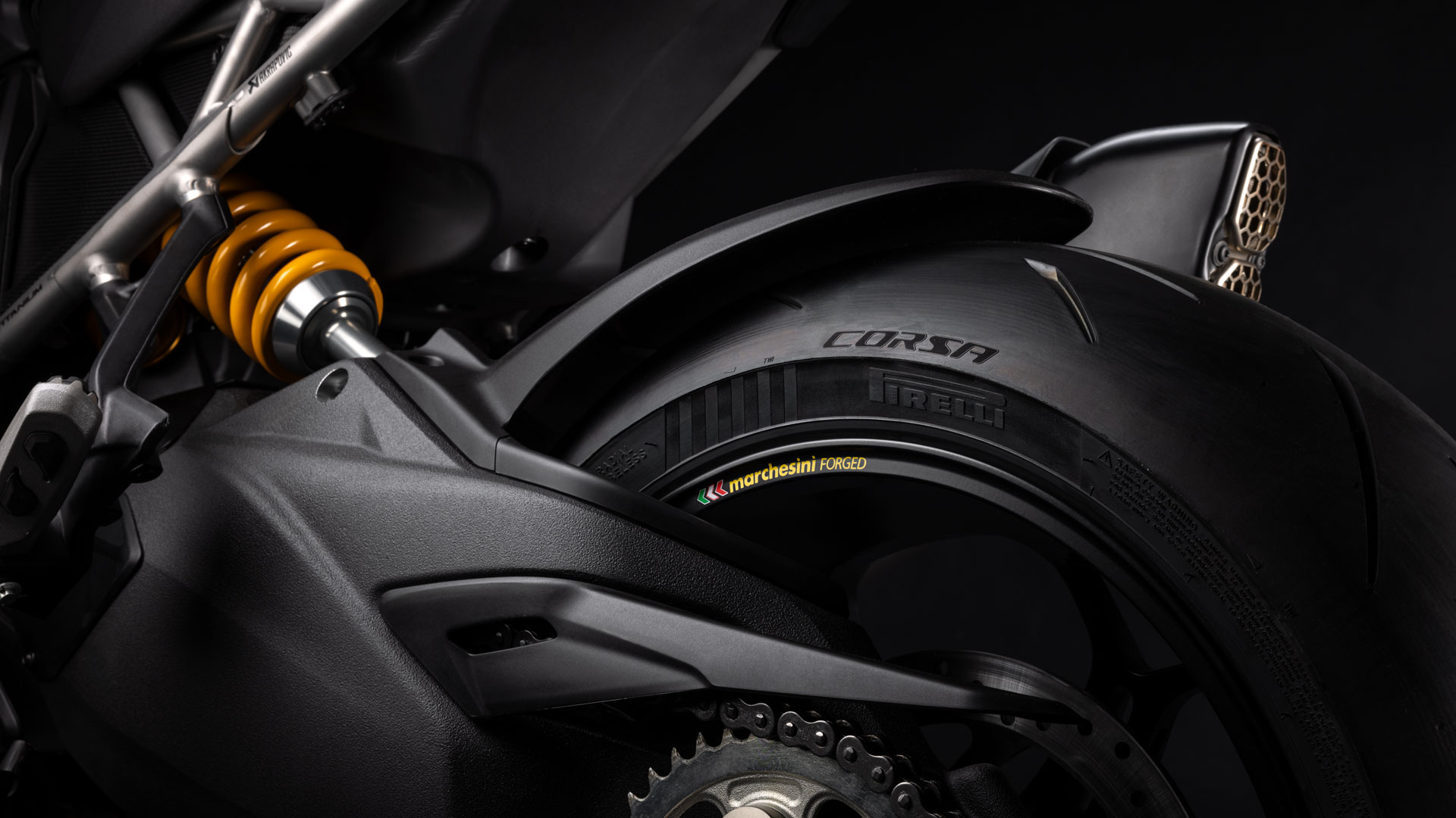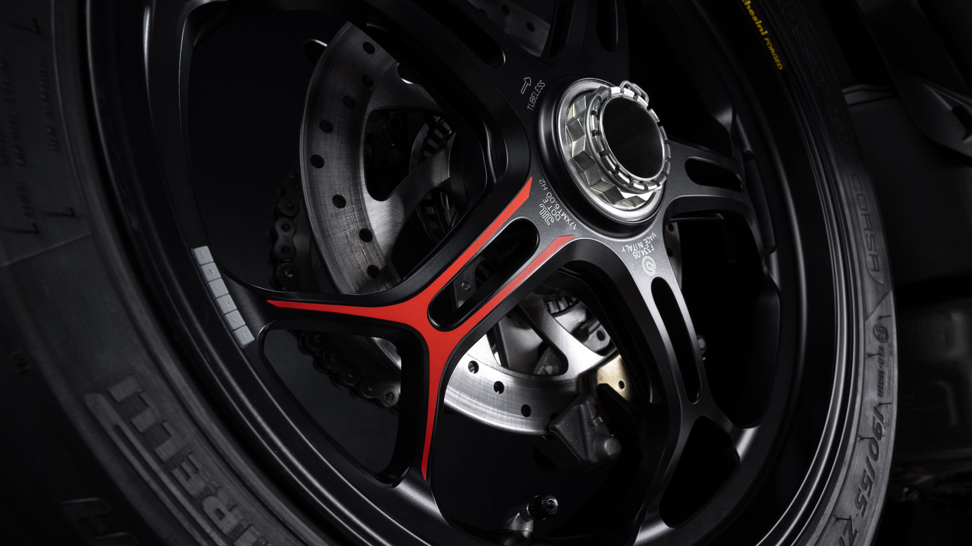 Για το συγκεκριμένο μοντέλο εξελίχθηκαν νέες, αποκλειστικές σφυρήλατες ζάντες αλουμινίου 17 ιντσών, που συνδυάζονται με ελαστικά Pirelli Diablo Rosso IV σε διαστάσεις 120/70 ZR17 εμπρός και 190/55 ZR17 πίσω.