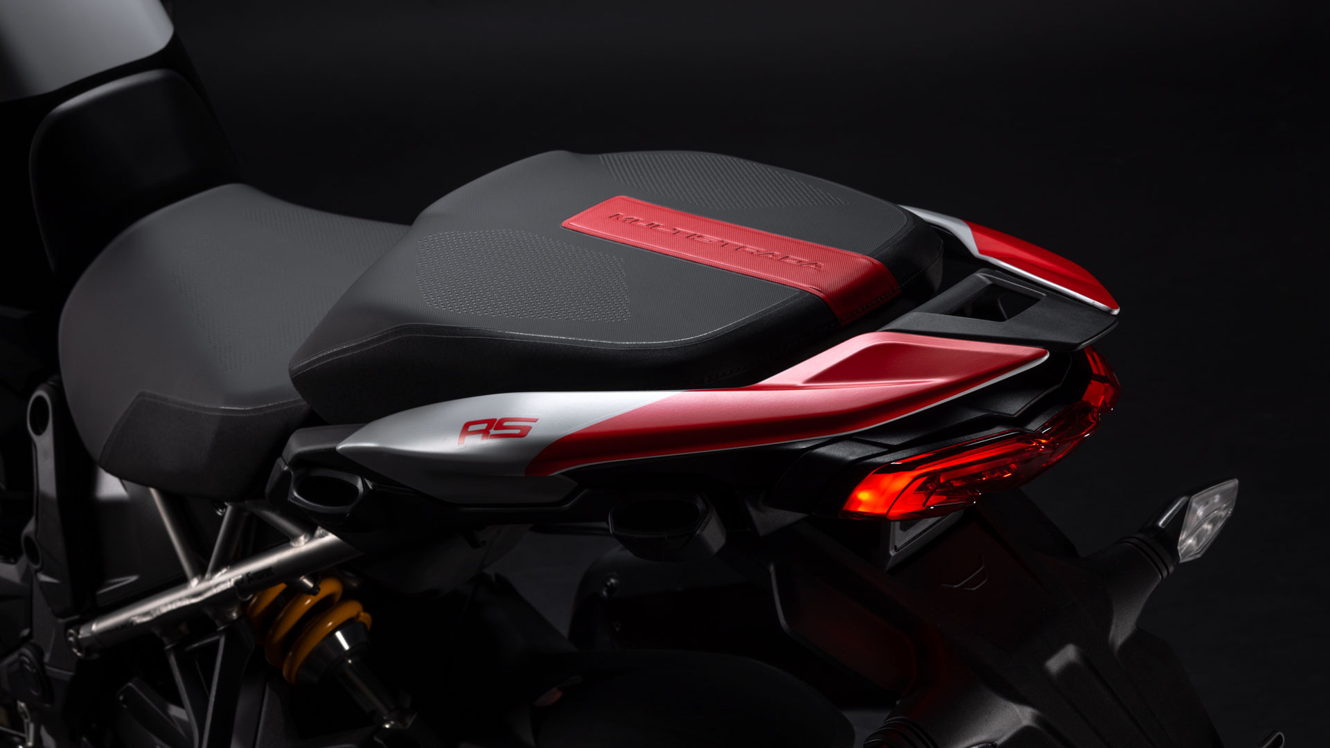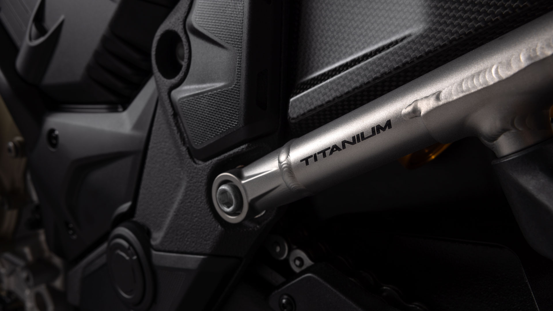 Τα χαρακτηριστικά στοιχεία της Multistrada V4 RS προσφέρουν ιδανικό συνδυασμό επιδόσεων και άνεσης. Η λεπτή και ελαφριά ουρά ενσωματώνει τις χειρολαβές του συνεπιβάτη, δημιουργώντας ένα προφίλ που είναι ταυτόχρονα σπορ, εκλεπτυσμένο και εντυπωσιακό. Το υποπλαίσιο από τιτάνιο, τονίζει τον αγωνιστικό χαρακτήρα της μοτοσυκλέτας, προσφέρει μείωση βάρους 2,6 κιλών σε σχέση με τη standard έκδοση και επιτρέπει – για πρώτη φορά – την τοποθέτηση top case. Ολοκληρώνοντας τον αποκλειστικό σχεδιασμό, το μονόμπρατσο αλουμινένιο ψαλίδι, εκπέμπει κομψότητα και καθαρή μηχανολογική ομορφιά, αναδεικνύει ακόμα πιο έντονα τη σπορ ψυχή της Multistrada V4 RS.