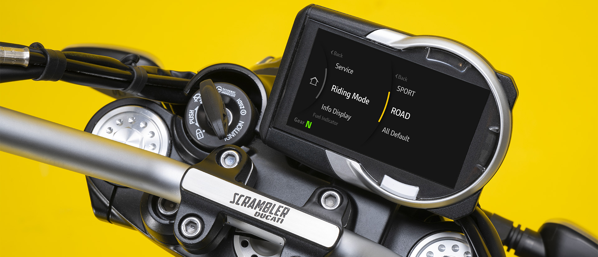 Η νέα γενιά Scrambler διαθέτει σύστημα πολυμέσων Ducati. Συνδέστε το τηλέφωνό σας και διαχειριστείτε διαφορετικές εφαρμογές μέσω των χειριστηρίων του τιμονιού.